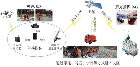 消防轻骑兵前突小队应用超轻型卫星便携站拓扑示意图
