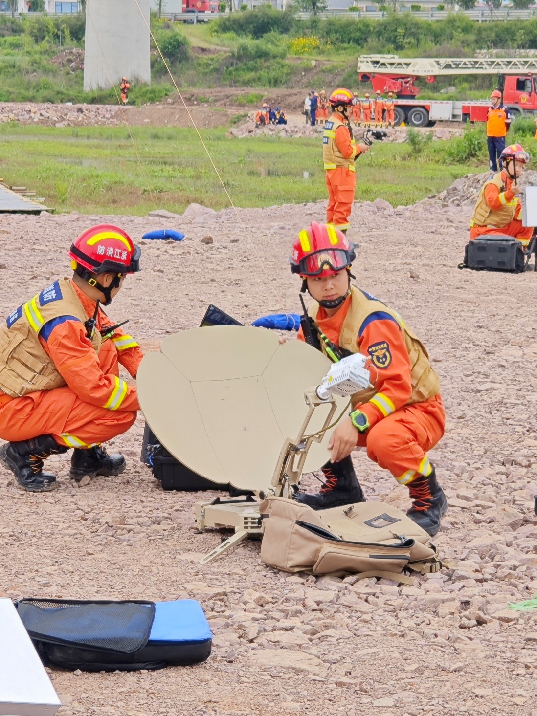 此次实战演习以超强台风和超大洪涝灾害场景为背景,面对演习现场的环境的复杂性以及通信困难等问题,益天北创提前制定了卫星通信装备测试保障方案,组建了专业精良、经验丰富、严谨细致的专项服务保障团队。先行提前驻扎于现场20余天,配合轻型队、重型队的消防员进行多场景模拟的通信实战。