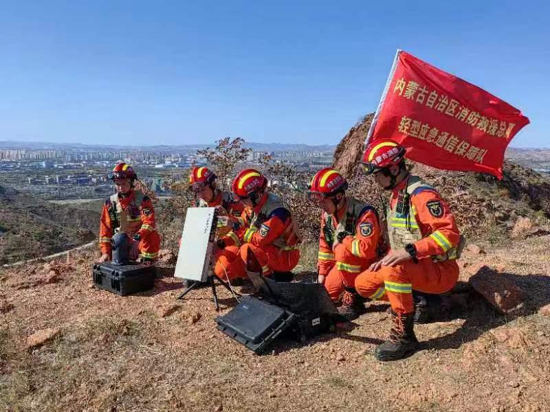 在“北疆蓝讯·2023”国家综合性消防救援队伍现场联合作战指挥通信体系示范建设现场会实战演习中,包头市固阳县阴山山脉大清山地形复杂多样的环境下,为了解决现场音视频通信覆盖难题,内蒙古自治区消防救援总队轻型应急通信保障分队进行现场实际测试应用超轻型手自一体卫星便携站的情况。该设备内置Mesh通信模块,可以实现本地单兵至卫星站的无线数据传输以及救援现场与后方指挥中心的音视频和数据回传。